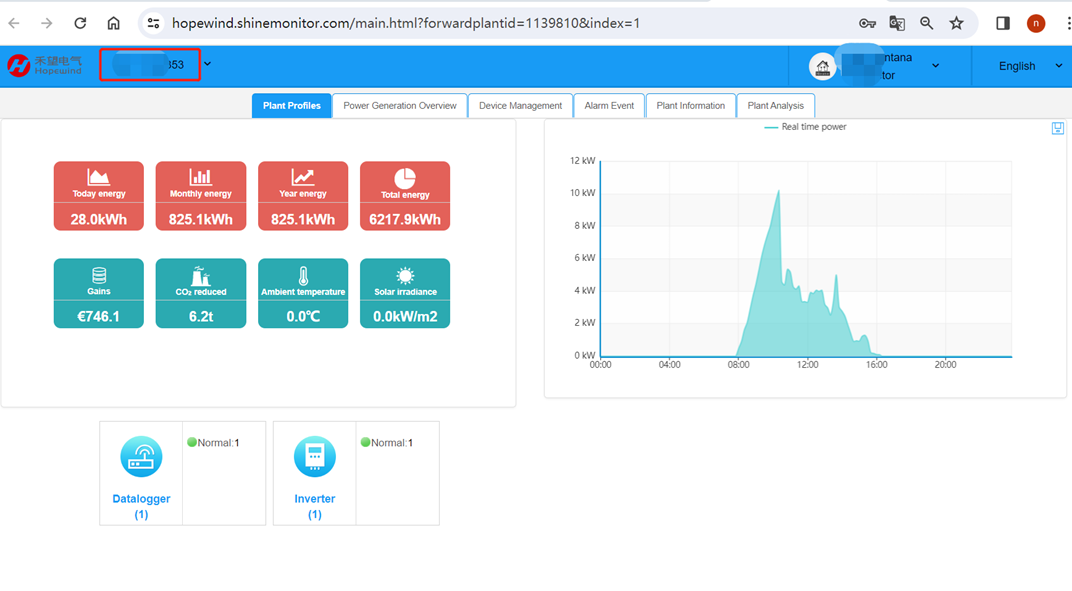 After login hopeCloud, users could check the same plant and inverter on hopeClould.